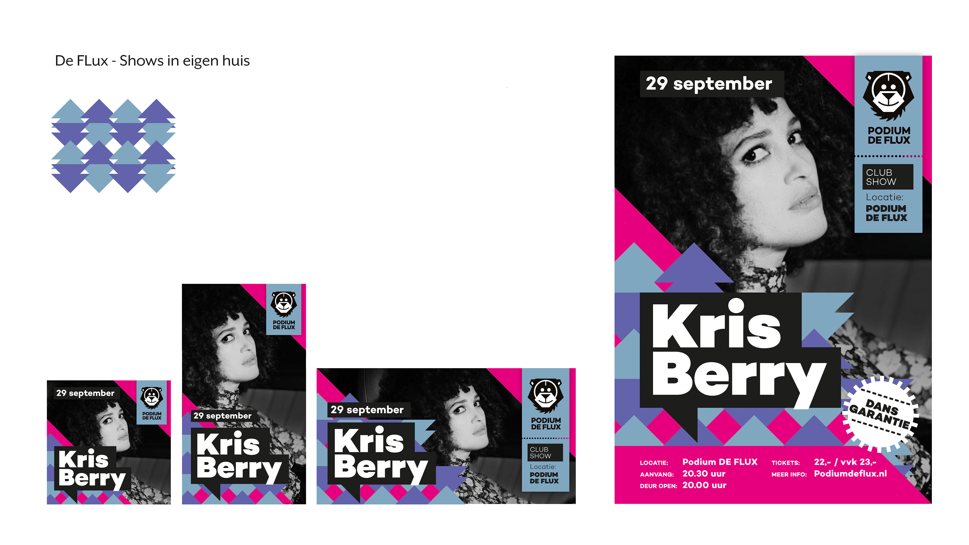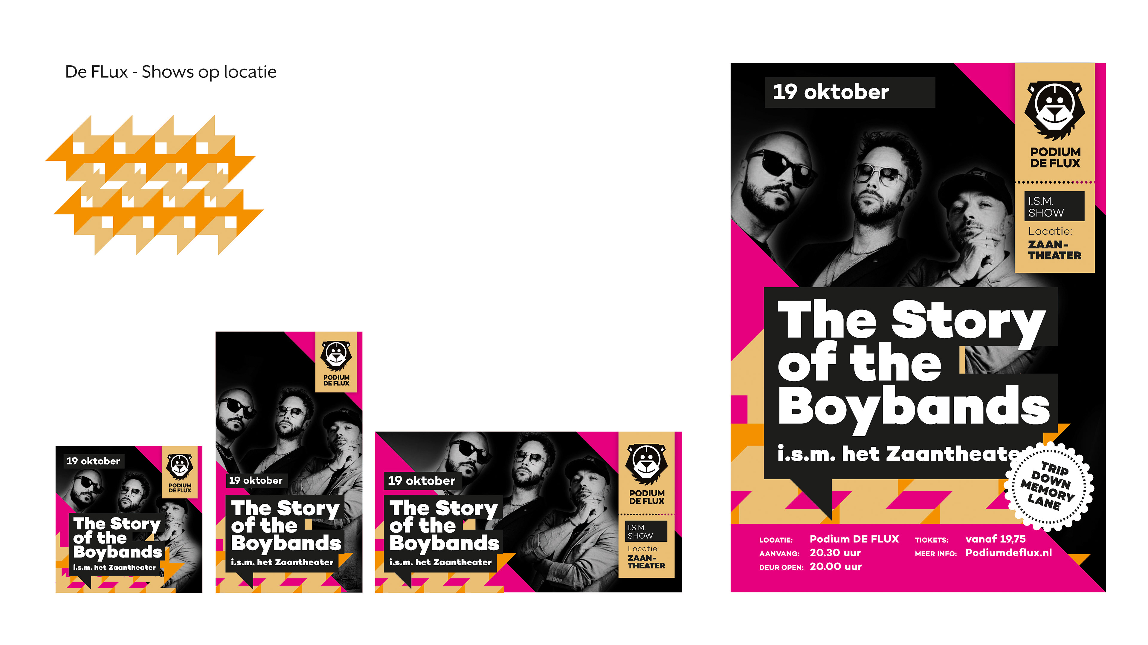 Restyle waarbij de diverse locaties leidend zijn. Invalshoek is het design van een patroon zodat visueel duidelijk is waar de show plaats heeft.